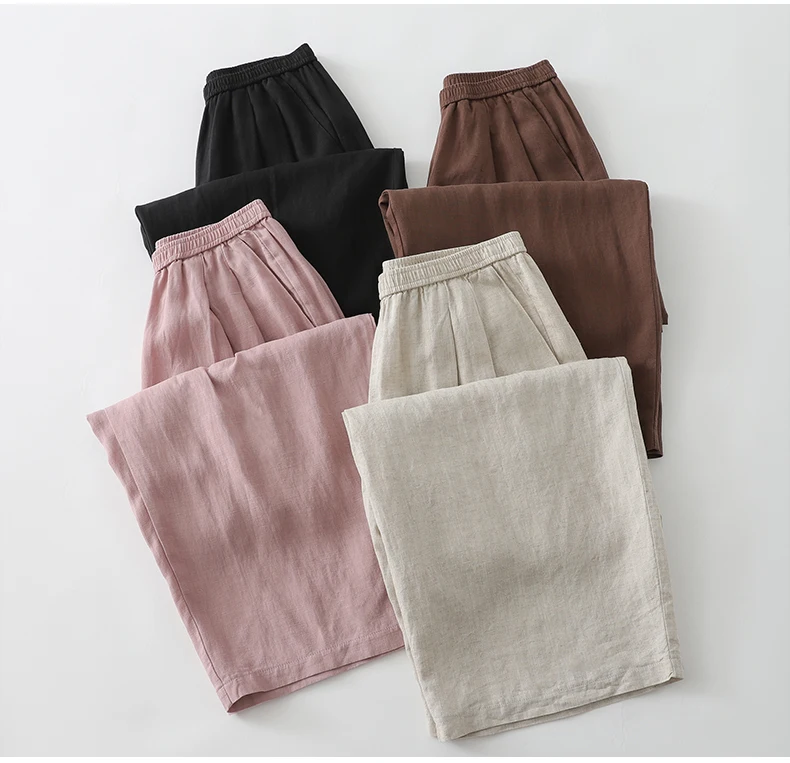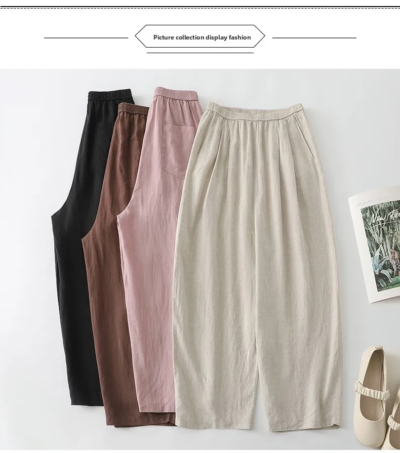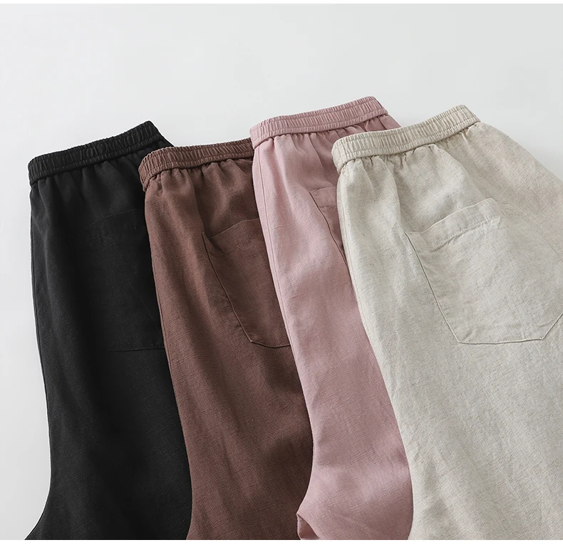 Crafted from a blend of cotton and linen, these trousers provide breathability and comfort, ideal for summer wear.
